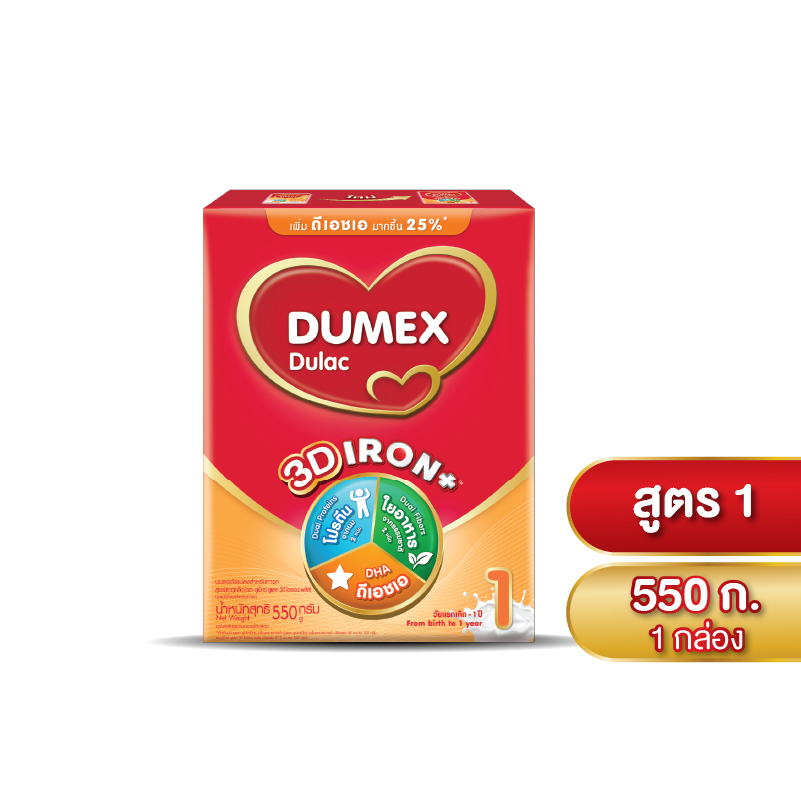 นมผงดัดแปลงสำหรับทารก สูตรมีธาตุเหล็ก (ตราดูเม็กซ์ ดูแลค 3ดี ไอรอน พลัส)